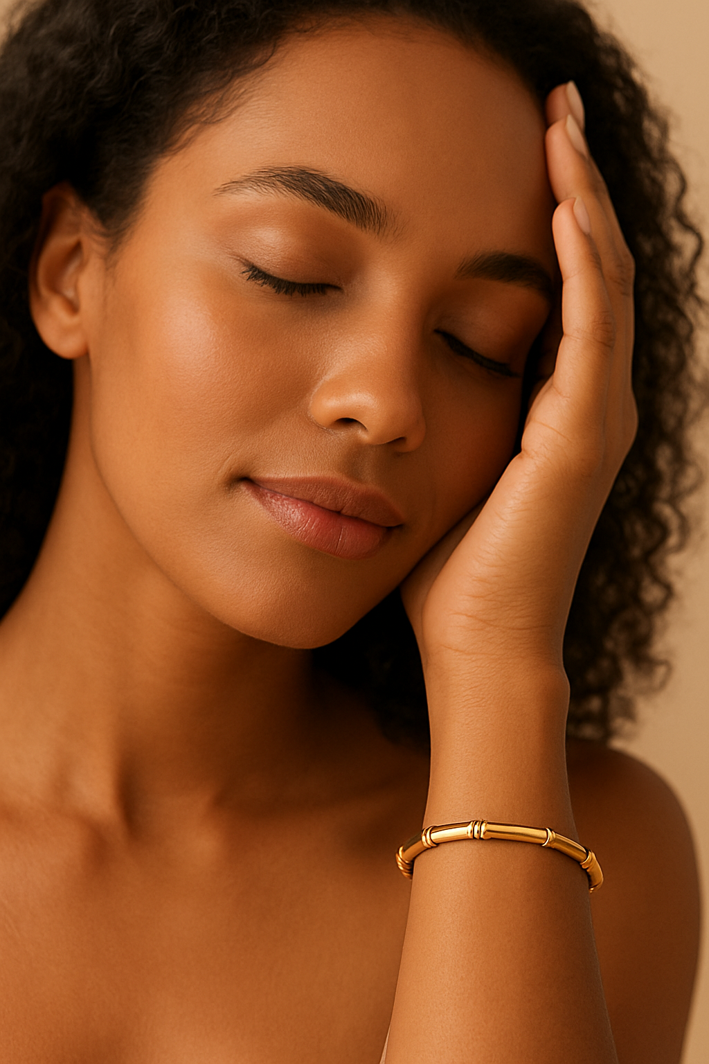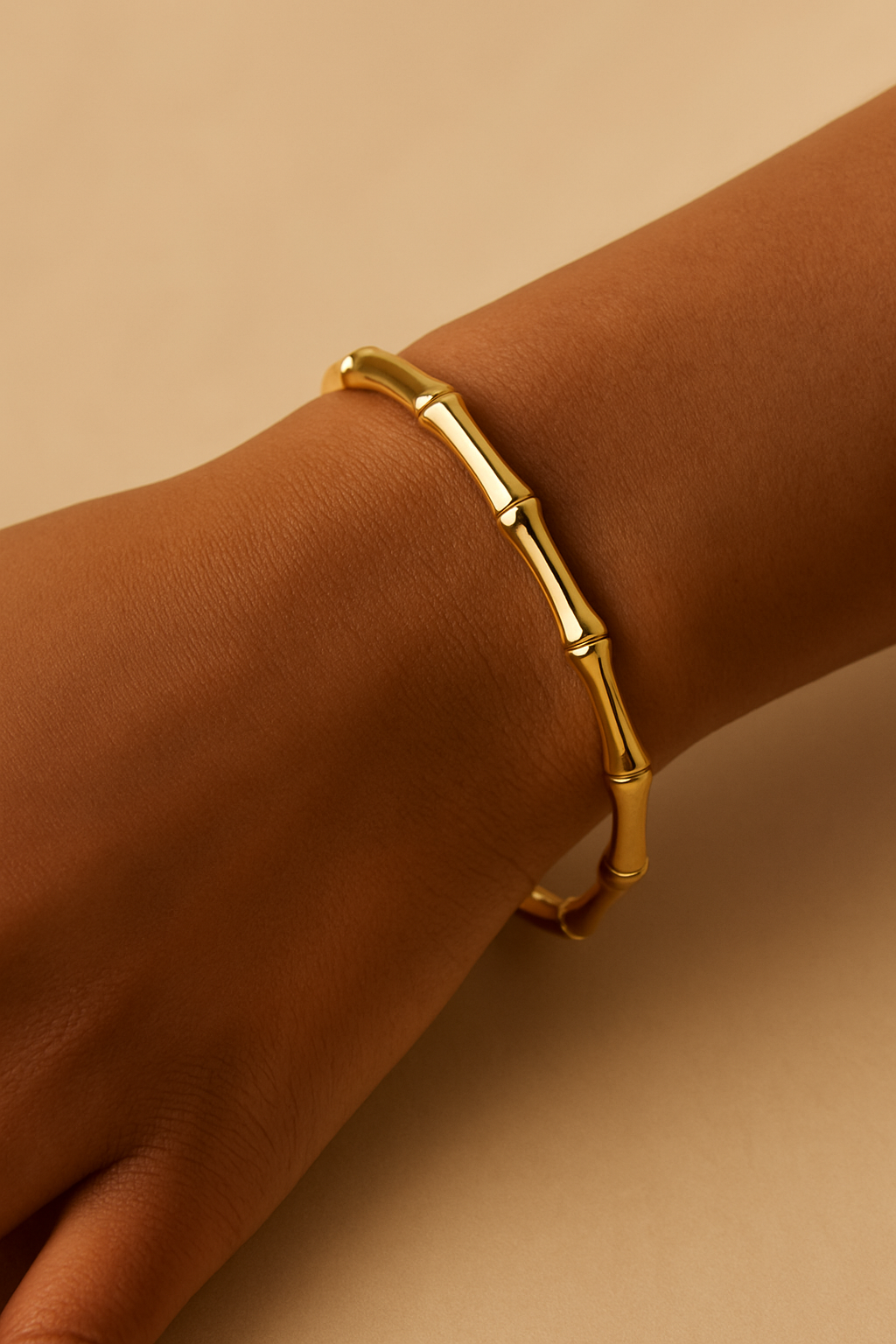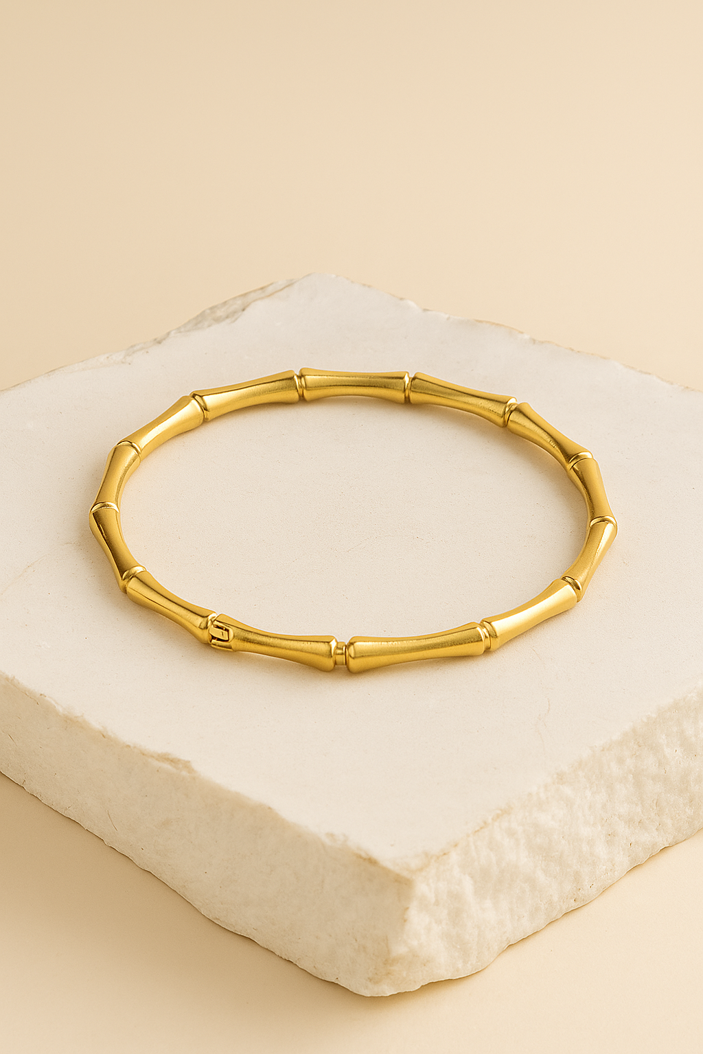 A sleek gold-plated bangle inspired by the natural elegance of bamboo, symbolizing strength, resilience, and prosperity.